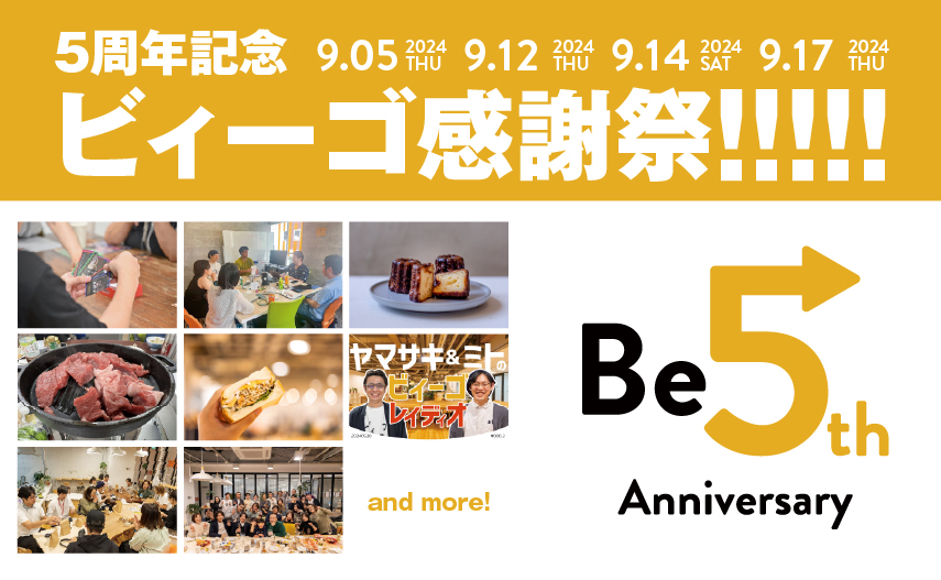 9/12・17:大阪・枚方ビィーゴ「コワーキングキャンプ飯部」「ビィーゴ5周年祭」